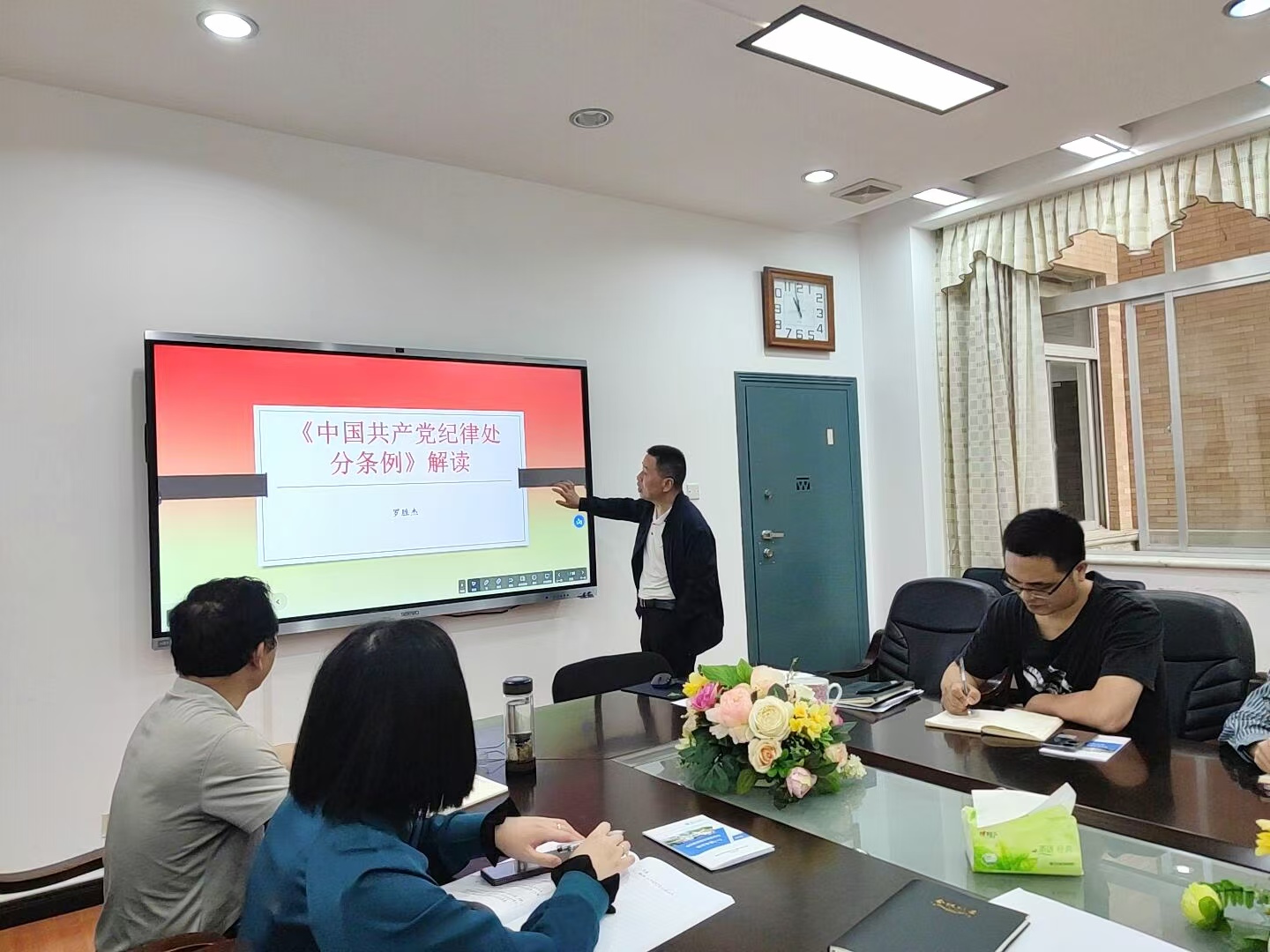 罗胜杰为大家带来了“《中国共产党纪律处分条例》解读”主题微党课。党课着重介绍了政治纪律、组织纪律、廉洁纪律、群众纪律、工作纪律和生活纪律方面的内容及修订情况。罗胜杰提醒全体党员把学习贯彻《条例》作为重要政治任务,以严明的纪律推进党的自我革命。他结合学校工作要求,带领全体教职工学习了《365英国上市集团本科公司产品审核评估知识手册》,号召全体同仁提高思想认识,不断加强学习;多效协同联合,不断强化主人翁意识;多方齐抓共管,不断推进行动落实。