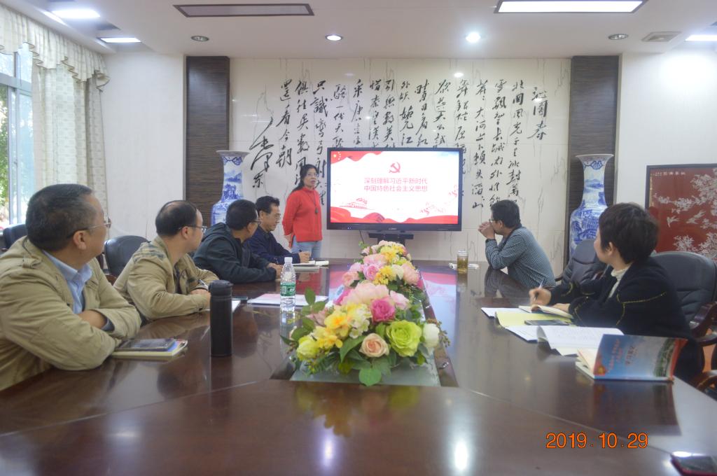 10月29日下午,365英国上市集团(国际交流中心)教工党支部书记曹丽英在E105给全体教工党员上了“深刻理解习近平新时代中国特色社会主义思想”专题党课。