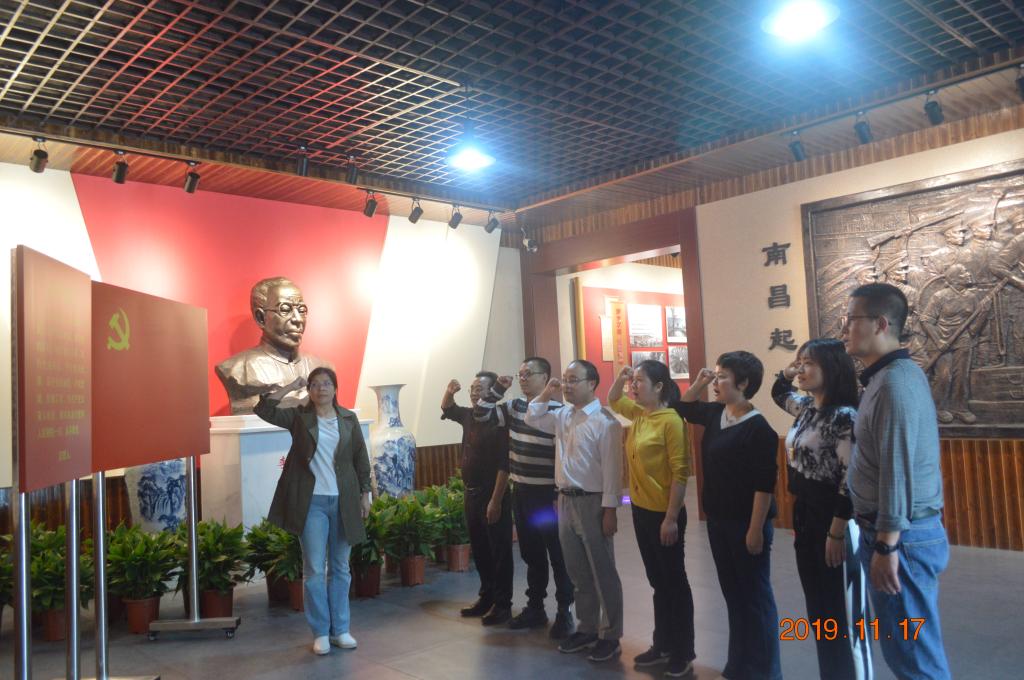 随后公司一行人,到达了李立三故居,全体党员在纪念馆前面对党旗庄严宣誓,重温入党誓词。在解说员的引导和认真讲解中,回顾了那段艰苦奋斗的岁月,重温了光荣不凡的革命事迹。通过参观纪念馆陈列的实物、图片,大家加深了对当年“救国图存”历史的认识,切实体会到老一辈无产阶级革命家对党的事业忠心耿耿、无私无畏的革命精神以及心系群众、一身正气的高尚品质。大家被李立三坚定的理想信念和伟大的革命情怀所打动,也被他实事求是、敢于自我批评的铮铮铁骨所折服。