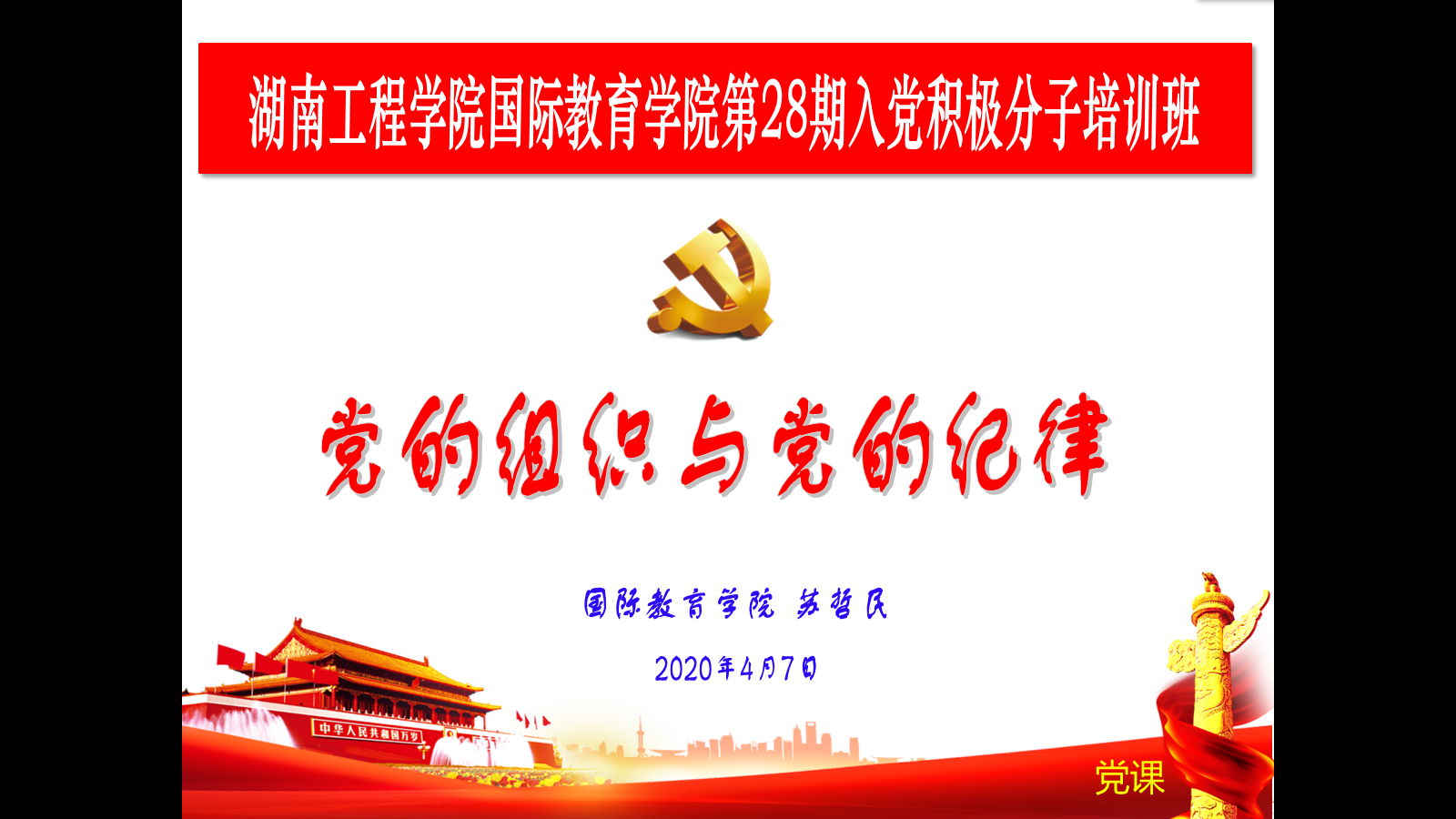 2020年4月7日晚7:00,公司党总支书记苏哲民为学院分党校第28期入党积极分子培训班学员讲授了一堂 “党的组织与党的纪律”党课。