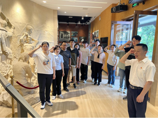 在陈列馆前厅,公司党委书记罗胜杰率领全体党员重温入党誓词,他表示,学校致力于“三色”思政教育,开展红色革命传统教育、蓝色工匠精神教育和绿色环保理念教育。今天,大家徒步韶山罐渠,上了一堂“行走的思政课”。大家一定要认真学习韶灌精神,努力传承红色文化,积极发扬“三牛四干”精神,立足岗位,争创一流,为实现“三高四新”美好蓝图,建设社会主义现代化新湖南贡献湖工智慧和力量!