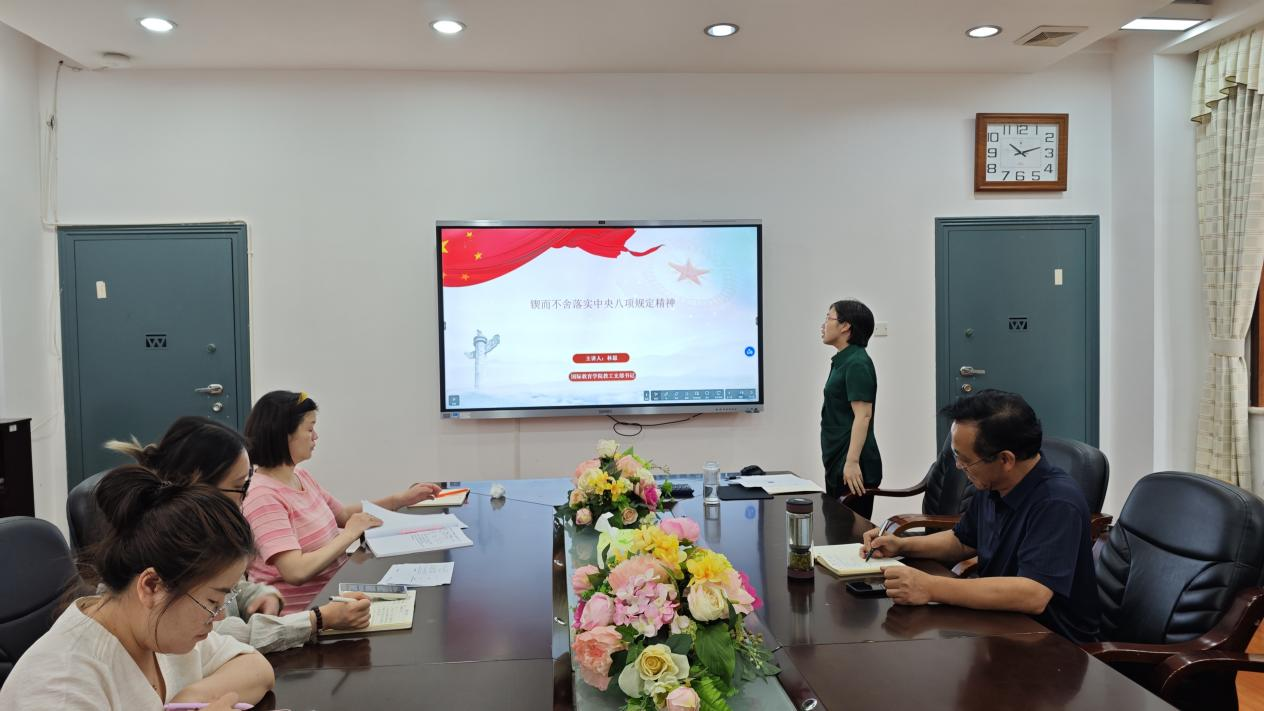 林愿以《锲而不舍落实中央八项规定精神》为题,讲授了专题微党课。党课紧密联系新时代党风廉政建设和反腐败斗争的形势,结合学院工作实际,详细阐述了中央八项规定精神的深远意义与实践要求。她指出,中央八项规定是全面从严治党的“第一刀”,其核心在于通过整治“四风”问题锻炼党性、净化风气。她号召党员干部要从细节做起,在学术交流、国际合作等关键领域坚守纪律底线。