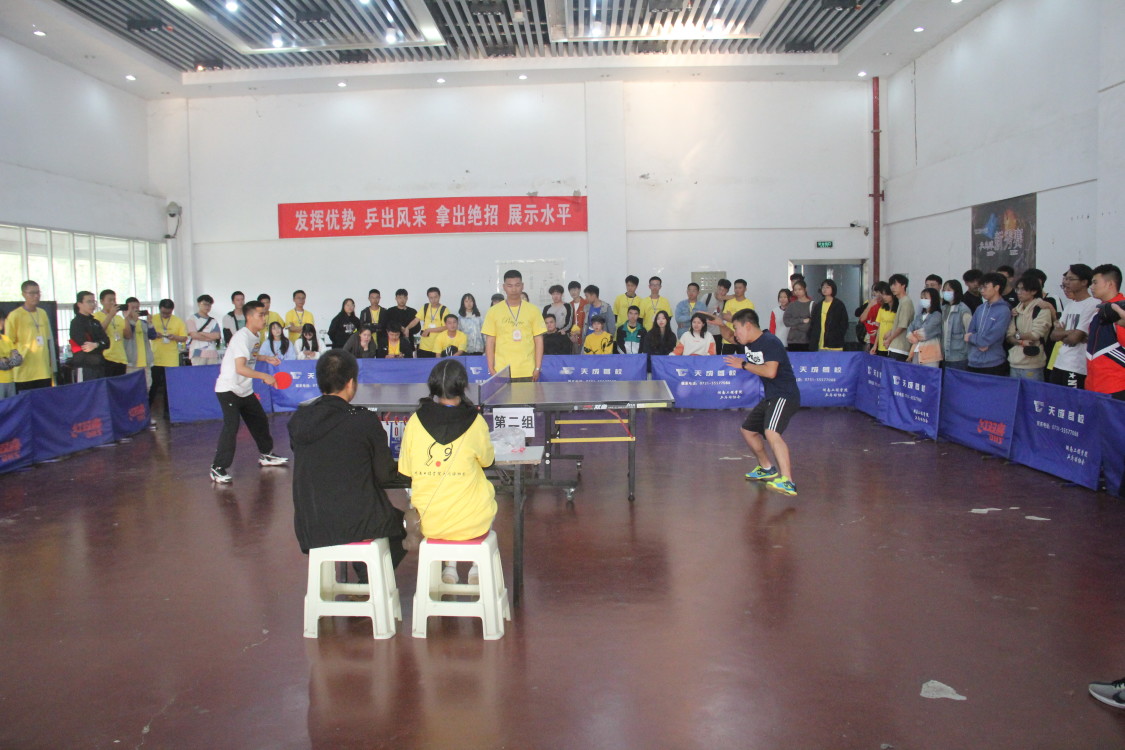 现场有来自各个院系150余位乒乓球新秀选手同台竞技。比赛共分为淘汰赛、晋级赛和冠亚军争夺赛三个环节,赛制为三局两胜制和七局四胜制。比赛中,选手们展现出了良好的竞技状态和拼搏进取的精神风貌。小小的乒乓球在台案上飞速穿梭,选手们攻防转换,你来我往,精彩纷呈,赢得了观众们的阵阵喝彩。