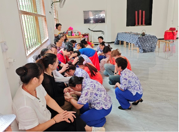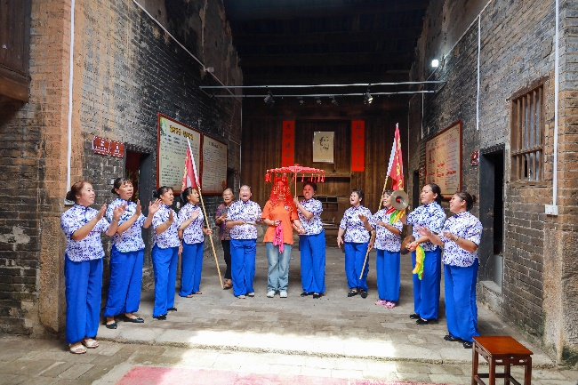 实践团走进拥有千年历史底蕴的雷公井古村,这里,木雕与石雕工艺交相辉映,每一刀一凿都透露出匠人的心血与智慧。他们不仅用相机记录下这些珍贵的文化遗产,更与村民亲切交流,深入了解雷公井村独特的婚俗、节庆文化。在交流的过程中,实践团成员夏玉琴接受了当地村民热情的邀请,跟随村民的脚步,亲身体验了从伴嫁到哭嫁这一国家级非遗文化“嘉禾伴嫁歌”的全过程。在媒婆等众多村民妇女的歌曲和戏剧声情并茂的表演中,她深刻体会到了伴嫁歌的由来以及传承这项非遗文化的深远意义。伴嫁歌歌者们用真挚的情感和婉转的歌声,唱出了对美好生活的向往与祝福,让在场的每一位实践团成员都沉醉于这充满情感与故事的世界之中。员工丰梦婷感慨道:“聆听嘉禾伴嫁歌,仿佛置身于一个充满民俗魅力的世界,那质朴的歌词和婉转的旋律让人思绪万千,更加坚定了我们传承和弘扬中华优秀传统文化的决心。”这次亲身体验不仅让实践团成员们深刻感受到了嘉禾伴嫁歌的独特魅力,也进一步激发了他们传承和保护非遗文化的责任感和使命感。