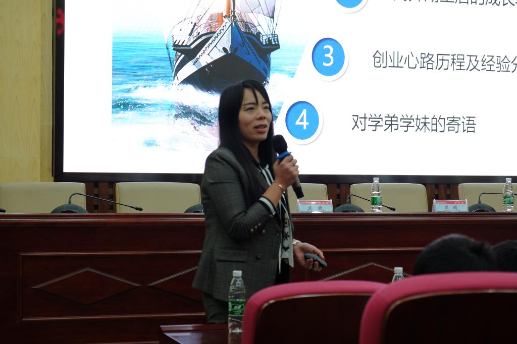 周娟员工分享了湖工老员工活留给自己的人生财富,提醒同学们在大学阶段要有意识地培养和锻炼自己,不仅要吃透每门课程的知识和技能,做到学以致用,还要注重全面提升自己的素养和能力,学会待人接物、文明礼仪等做人的基本道理。她还用自己离开湖工后的成长和创业经历为例,勉励同学们勇于开拓创新,善于抓住机遇,敢于迎难而上,扬起理想的风帆,砥砺前行。