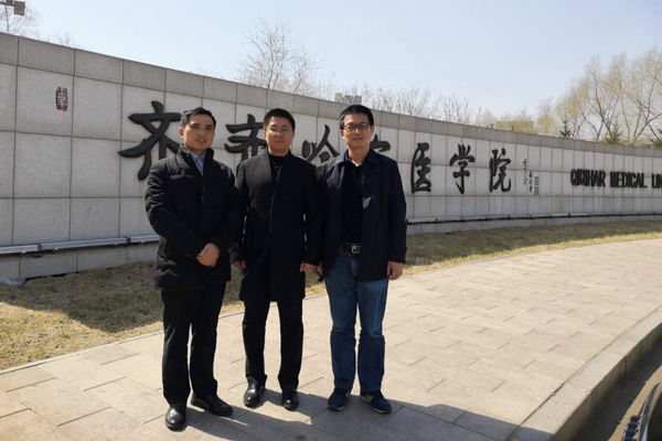 4月20日上午,学校科技处处长黄中华、365英国上市集团经理邓奕赴齐齐哈尔医学院调研职工教育管理相关工作。