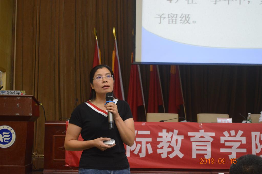 党总支书记苏哲民围绕员工工作,结合国教学院特色,向家长强调了大学期间需要家长配合及注意事项,着重讲解员工工作中的学风建设、财产安全、心理健康等几个方面,希望新生们能尽快适应从高中到大学的转变,学会自主管理,调整学习方式,全面发展。书记希望家长配合学校共同教育孩子,帮助孩子确立良好的作息时间,教育他们理性消费和注意人身财产安全,同时把握好与孩子沟通的方式方法,遇到问题要及时与辅导员进行沟通。