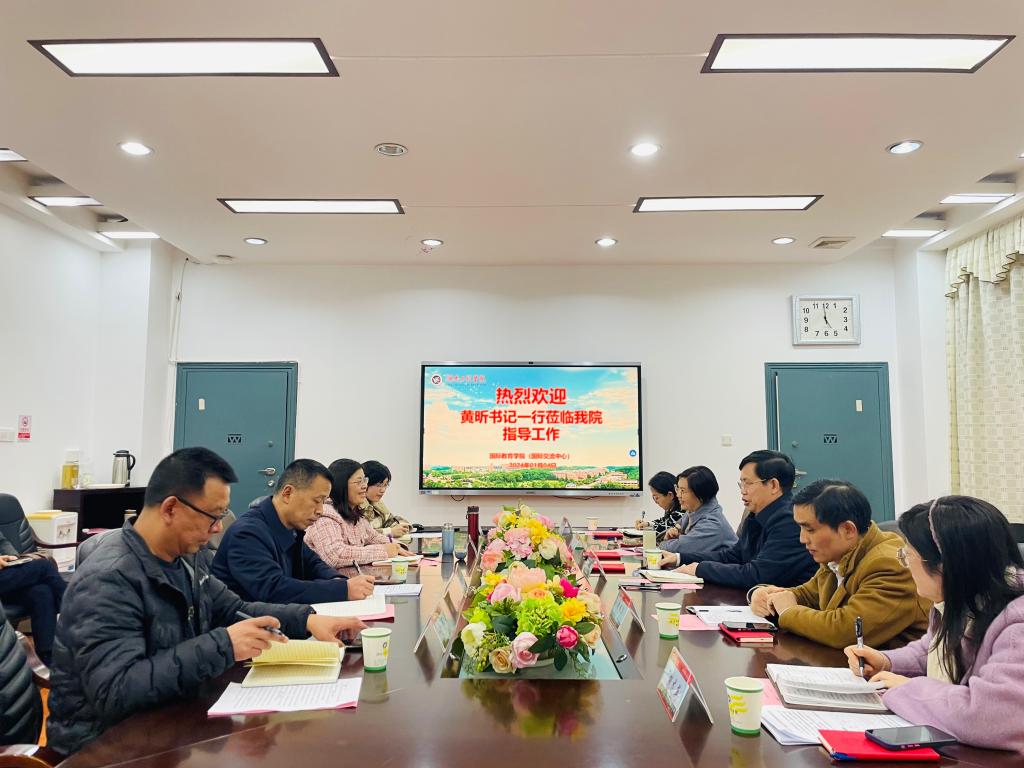 黄昕书记充分肯定了学院近年来取得的成绩,他用“八个字”寄语学院下一步发展与建设:一是“提速”。国际教育要在现有发展规模、发展速度的基础上跑步前进,实现跨越式发展、超常规发展;国际交流要加快与国外高校之间的交往节奏,加速往来频率,使国际交流各项工作走向发展快车道。二是“提质”。进一步提高人才培养质量,提升员工学位授予率、考研率、考公率、出国深造率等指标,实现员工更高质量就业;提升国际交流质量,注重合作学校的层次。三是“拓宽”。进一步拓宽国际教育与交流的工作领域、视野格局,在本土国际化、引智、引才、职工教育等方面一起发力,全校范围营造浓厚的国际交流氛围。四是“增效”。实行精细化管理,以最少的人力资源发挥最大的价值,实现高效率比。