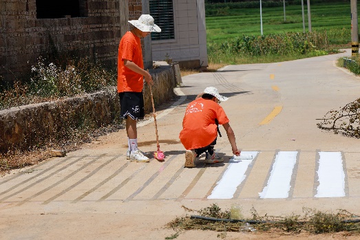 为了提升乡村道路安全性和美观度,实践团成员绘制了乡村首条特色斑马线,巧妙地融合了当地稻米种植的元素,使斑马线成为一道亮丽的风景线,同时也提高了村民的出行安全。