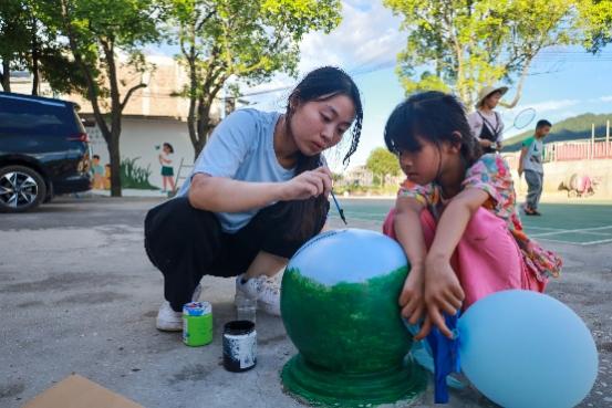 实践团利用二十四节气这一传统文化载体,指导孩子们创作了具有浓厚节气特色的石墩美术作品。每个节气都有其独特的自然象征,如白露时节的丹顶鹤、立冬的冰雪以及立秋的红叶,这些作品不仅美化了乡村环境,还丰富了孩子们的课外知识,让他们领略到先民对自然规律的深刻理解。小朋友表示:“在哥哥姐姐们的带领下,我了解了许多节气知识,我觉得中国的古人们在几千年前,就能对自然规律有这么准确的掌握,非常值得我学习这些知识。”