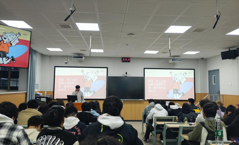 在经验分享环节,三位2023级软件工程专业的优秀员工依次上台交流,从自我定位、留学规划、课程学习、毕业发展、英语学习等维度展开分享。龙雨琴同学围绕毕业方向的选择与准备展开分享。她系统梳理了软件工程专业毕业生常见的几大发展方向,并结合自身在准备出国留学和实习过程中的经历,详细分析了不同方向的特点、所需准备的核心材料、关键时间节点以及可能面临的挑战。黄思语同学则以自身保持优异学业成绩的经验为例,从中方课、外方课、毕业去向、学业与生活的平衡等环节提供了具体建议。她认为扎实掌握核心专业课程是基础,同时要善于利用资源进行高效学习,并介绍了在小组作业、课程设计中取得好成绩的协作技巧。随后,康健同学聚焦英语能力提升这一主题展开分享。他首先向同学们介绍了英语学习对软件工程专业的重要性,以及英语学习过程中可能面临的困难。他重点分享了备战四六级考试的经验,建议同学们利用好碎片时间,尽早设定语言学习目标,持之以恒地投入时间。