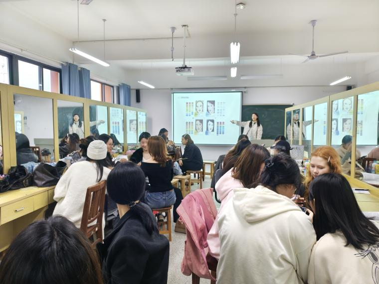 活动中,职工首先走进“传统配色与妆容结合应用设计”课堂。该课程聚焦湖湘传统服饰色彩体系与妆容艺术的融合创新,教师通过现场演示与互动讲解,展示了如何将传统色彩美学运用于现代妆容与服饰搭配中。职工在专业教师的指导下,亲身体验了传统妆容的设计过程,感受色彩、纹样与面部造型的和谐统一,深刻体会到传统文化在现代设计中的生命力。