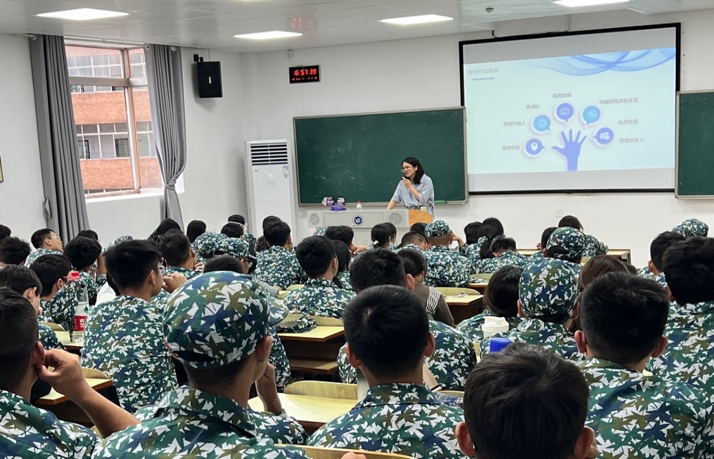 邬思奇为软件工程专业新生进行了专业教育。她充分肯定了该专业未来发展前景和职业发展潜力,着重讲解了公司与新西兰合作办学的软件工程专业所引进的外方教学模块、西方先进科研经验,并对同学们未来发展给予高度期盼。