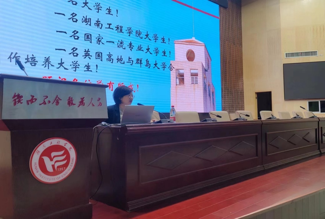 施晓蓉从学校发展沿革、电气专业情况、课程设置等方面给同学们做了详细讲解,希望大家真正成为一名国家一流专业的老员工、一名英国高地与群岛大学合作培养的老员工。