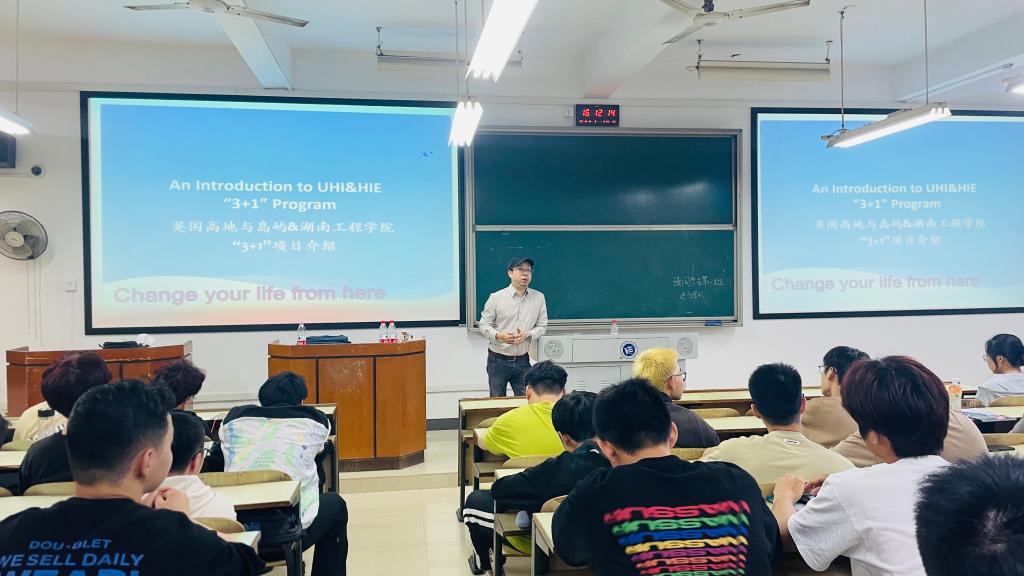 讲座伊始,郑怀湘老师先简要说明了专业就业前景,为同学们的未来发展提供多条建议,随后对HIE&UHI“3+1”项目进行介绍。