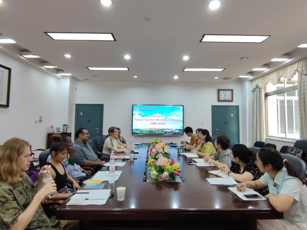 张丹向与会外籍教师讲解了学校各项管理制度,着重强调要注意人身和财产安全,谨慎发表言论等。林愿从教学大纲、授课计划、课堂管理、考查考核等方面,为外籍教师详细解读教学工作管理条例,希望外籍教师能够根据学校要求,规范化准备教学材料,提交教务办存档。