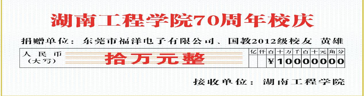 河北现代模具有限公司负责人、工商管理专业0412班杰出员工戴延东、高瑕夫妇捐赠30万元(十年期,每年三万元)设立员工基金;东莞市福洋电子有限公司副总经理、电气工程及其自动化专业1262班黄雄员工捐赠10万元;2004级员工赠送“锲而不舍 敢为人先”校训苏绣;商英1311班王国铮员工为母校特别订制校庆专用口罩......聚沙成塔,聚腋成裘,涓涓细流从四面八方汇聚湖工,凝成了员工们爱心之河。