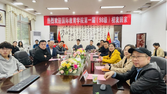 98级员工是学院首届毕业生,罗胜杰代表学院热烈欢迎各位员工返校。学院经理曹丽英向员工们介绍学校近年发展规划、学院员工培养情况、学院国际交流与合作的目标和成就。
